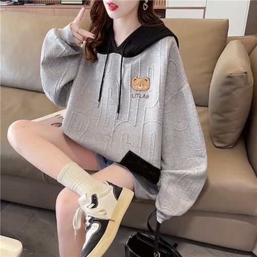 2024秋の韓国ファッションゆったりデザイン感薄手のワッフルベアーコート パーカー レディース アウター ジップパーカー