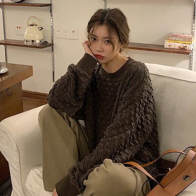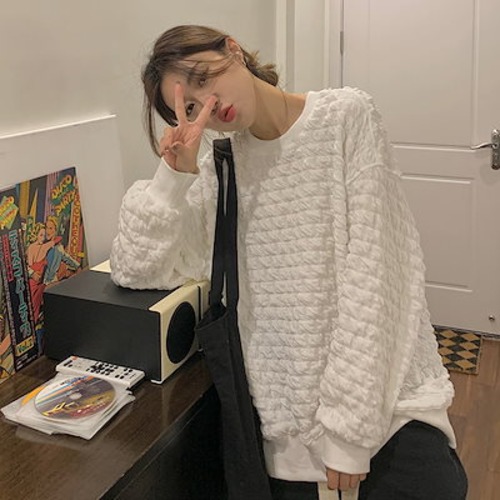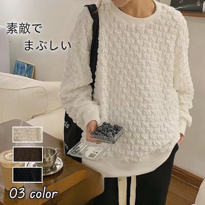 秋 日韓国ファッション ゆったり ラウンドネックスウェット レディース 高級感 プリーツ設計 長袖トップス 流行り 百掛け 長袖スウェット 怠惰な風 カジュアル Tシャツ
