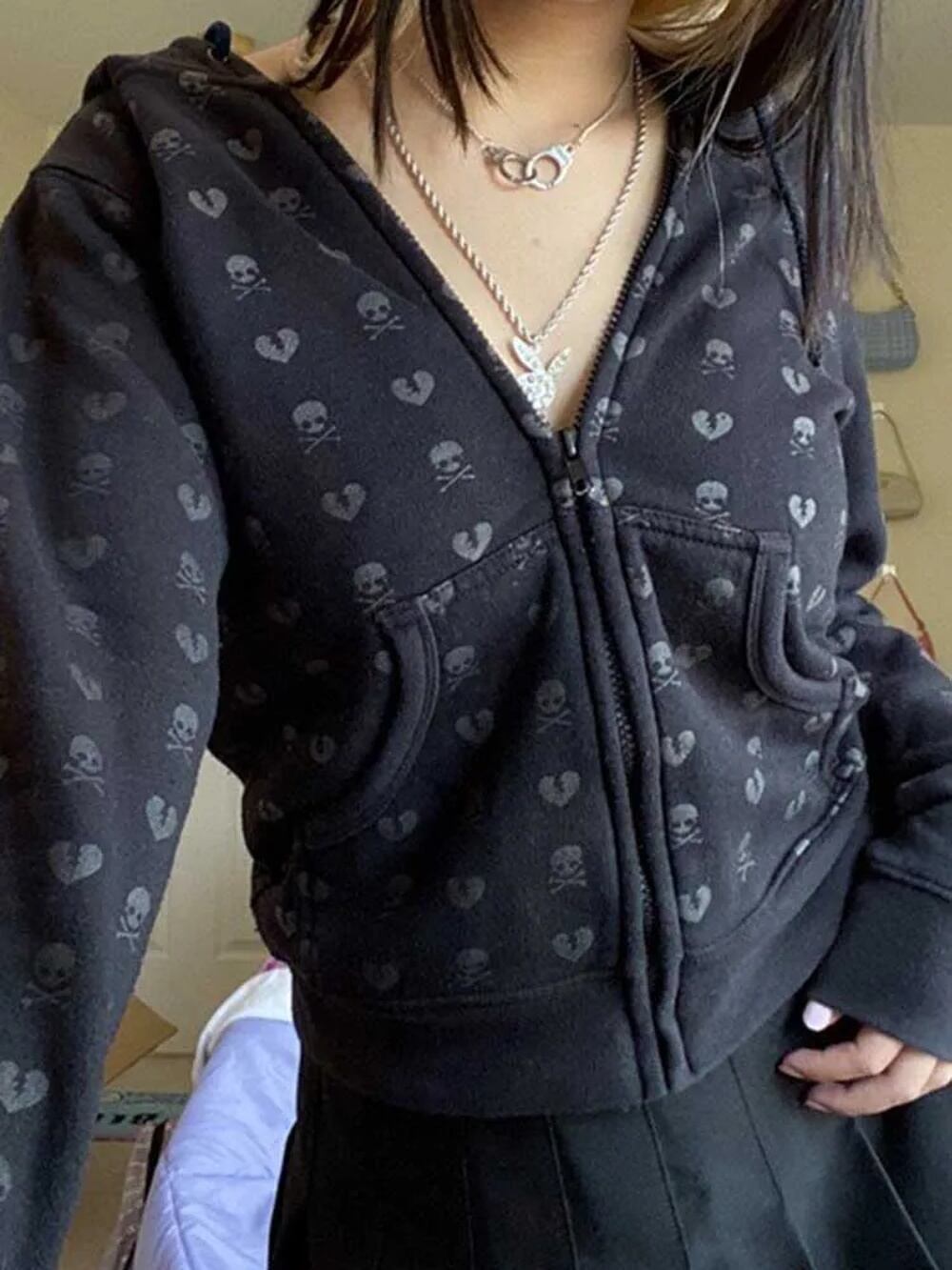 女性用スカルボーンパターンTシャツ,ジッパー付きY2k厚手の長袖カジュアルコート,特大スウェットシャツ パーカー ジャージ y2k T240908203435_34
