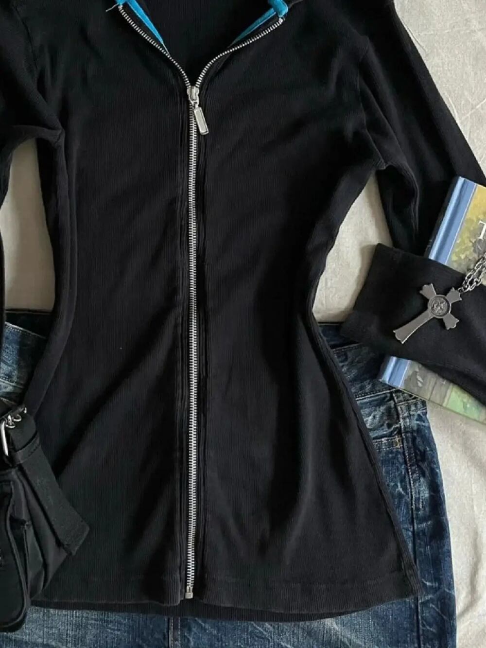 Y2K-女性用パンクパーカー,古着,スリムでセクシーなスウェットシャツ,ゴシック,ジップアップ,原宿アウター,女性用トップス パーカー ジャージ y2k T240908203523_01