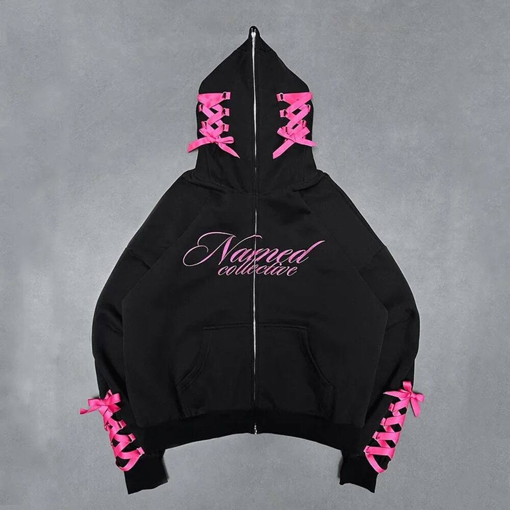女性用フード付きスウェットシャツ,ジッパー付きスウェットシャツ,黒,白,カジュアル,秋冬,レトロ,原宿ストリートウェア,クールな女の子 パーカー ジャージ y2k T240908203639_01