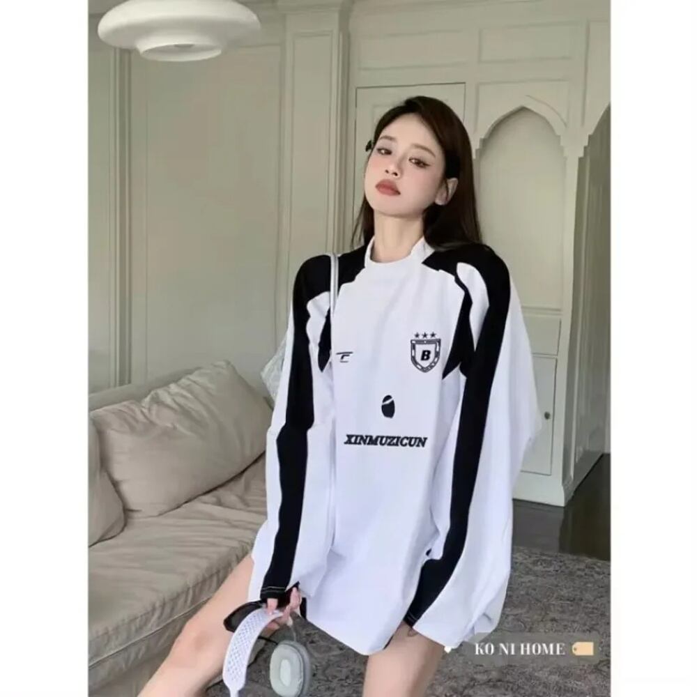 女性のための特大のヒップホップTシャツ、韓国スタイル、美的、グランジテクウェア、長袖トップス、ヒッピーパーカー、ヴィンテージストリートウェア、y2k パーカー ジャージ y2k T240908203703_01