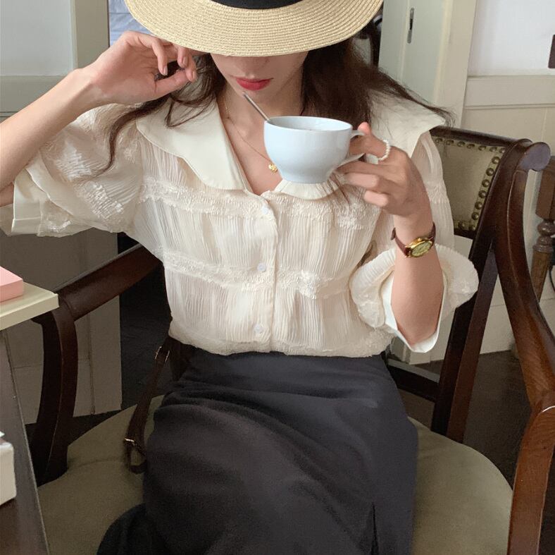 拘りの、大人可愛いデザイン パフスリーブ シャツ 夏 上着 トップス レディース 韓国ファッション