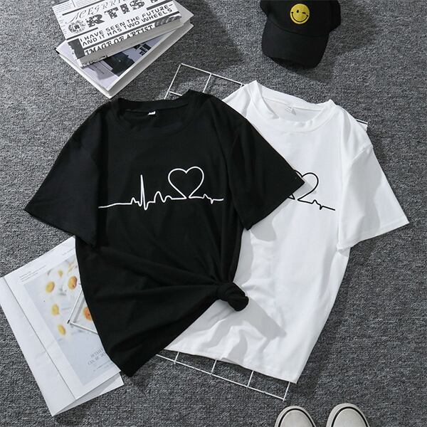 【Women】2022年春夏新作 韓国風レディース服 プリントアウト Tシャツ ハート おしゃれ トップス