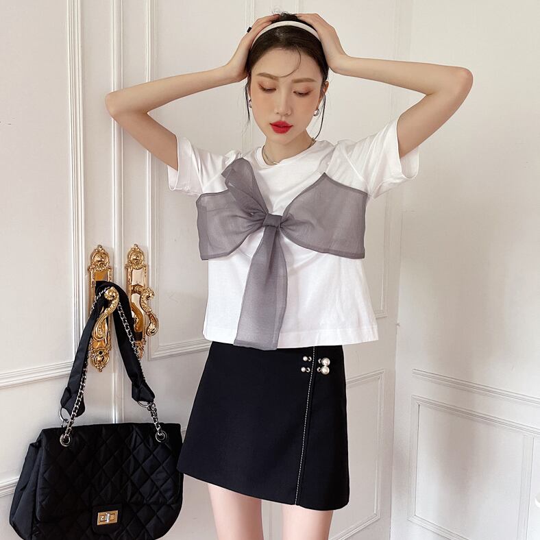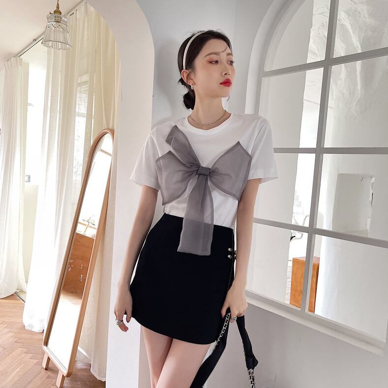 高レビュー 拘りの、大人可愛いデザイン Tシャツ 夏 半袖 上着 トップス レディース 韓国ファッション