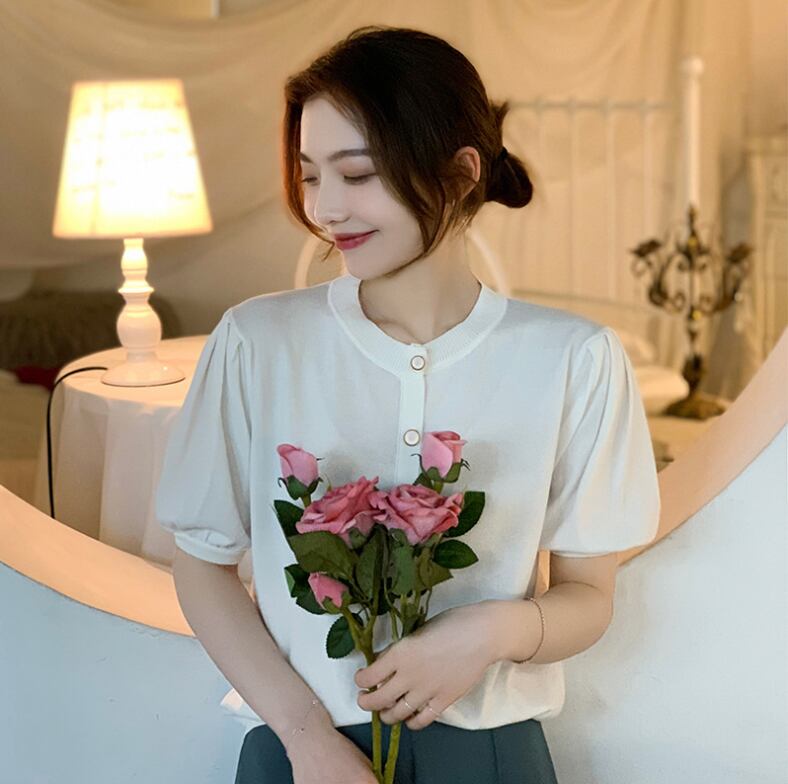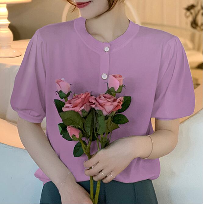 夏新作 ラウンドネック ゆったり ビスコース シャツ 上着 レディース 韓国ファッション トップス