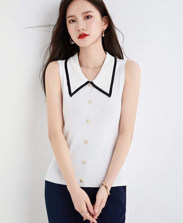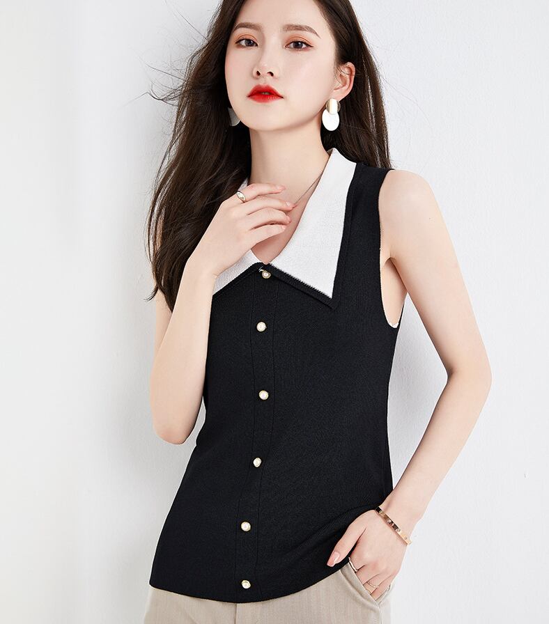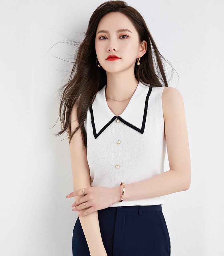 女性らしい 折り襟 ガーター ベスト 夏新作 ビスコース 上着 レディース 韓国ファッション トップス