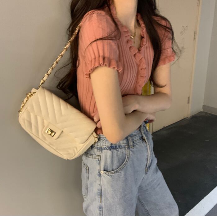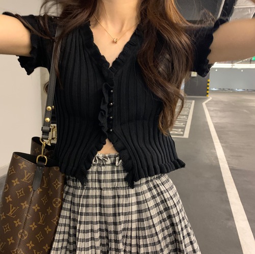 Vネック ショットタイプ 夏新作 スリム 半袖 上着 レディース 韓国ファッション トップス
