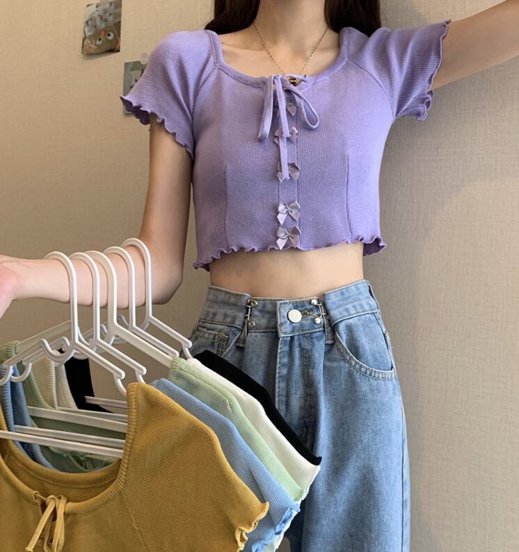 ショットタイプ Tシャツ 新作 半袖 上着 夏 レディース 韓国ファッション トップス