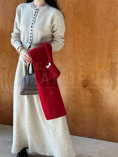 セットアップ レディース フォーマル スーツ スカートセット 上下2点セット ニット カーディガン スカート ロングスカート 2点セット 長袖 シンプル おしゃれ 気質 カジュアル 体型カバー 卒業式