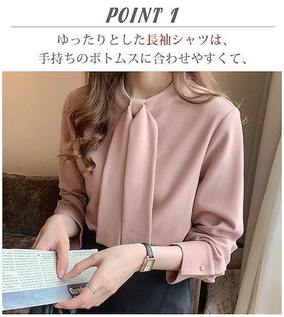 レディース シャツ フォーマル トップス ゆったり リボン OL 無地 着痩せ 大人 おしゃれ 通勤 ブラウス 春秋ビジネス オフィス フェミニン スーツ 仕事 長袖