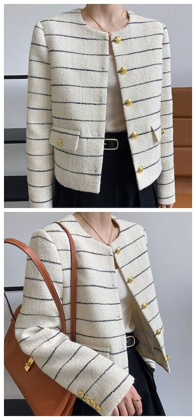 レディース スーツジャケット ストライプ柄 レディース コート 秋 ジャケット フォーマル ツイード スーツ カーディガン 春 秋 冬 オフィス 通勤 OL 入園式 入学式 30代 40代 50代