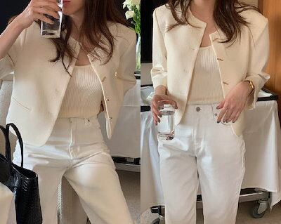 ジャケット レディース 春 秋 ツイード調 ノーカラー スーツジャケット カーディガン ショート丈 フォーマル ツイード スーツ カーディガン 着痩せ 体型カバー シンプル カジュアル おしゃれ フ