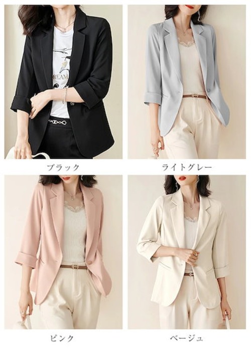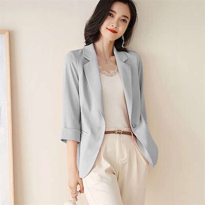 テーラードジャケット レディース 七分袖 フォーマル スーツ カジュアル トップス オフィス 通勤 OL ビジネス 薄手 はおり 上着 おしゃれ 無地 冷房対策 アウター トップス UVカット 春 夏