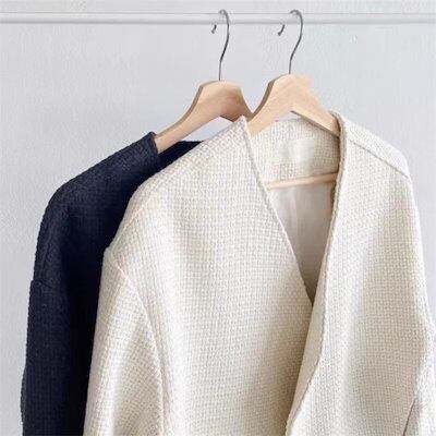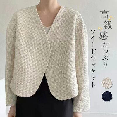 ジャケット レディース 春 秋 長袖 ツイード ノーカラー スーツジャケット カーディガン ショート丈 フォーマル スーツ カーディガン 着痩せ 体型カバー シンプル カジュアル アウター オシャレ大