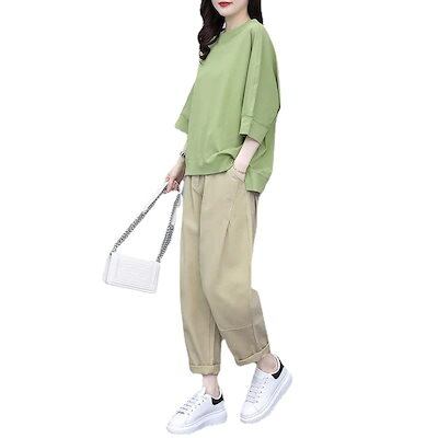 2024 楽ちんセットアップ 春夏秋 春夏秋 痩せ見え洋気減齢2点セット 半袖 ルームウェア スウェット上下セット スーツ レディース