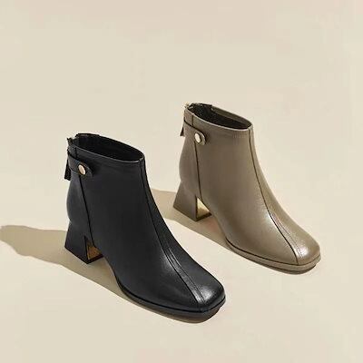 【2枚購入で 3oo円OFF!】ショートブーツ スタイルアップ!ヒールパンプス 厚底シューズ 秋冬新作 レディース靴 女性ファスナー