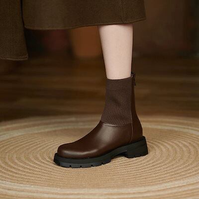 ニット ショットブーツ 伸縮性あり ソックスブーツ レディース 厚底 靴 ムートンブーツ