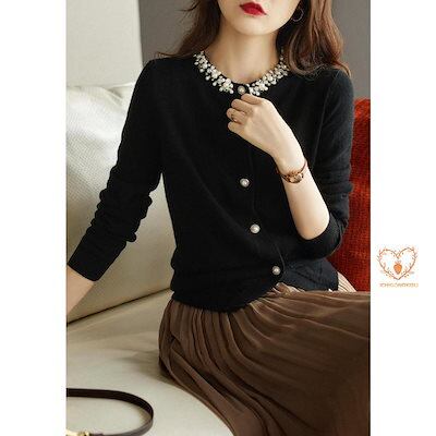 ニットカーディガン レディース 秋冬 40代 長袖ニットトップス 黒コーディガン パールネックカーディガン セーター ゆったり アウター 秋服 おしゃれ 上品 50代