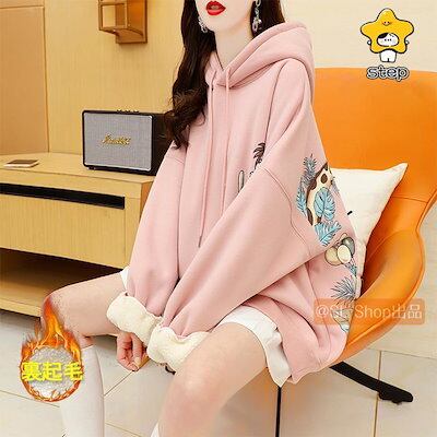 パーカー レディース 長袖 トップス 冬 裏起毛 厚手 大きいサイズ ゆったり 切り替え 暖かい 可愛 フード付き おしゃれ カジュアル 冬服