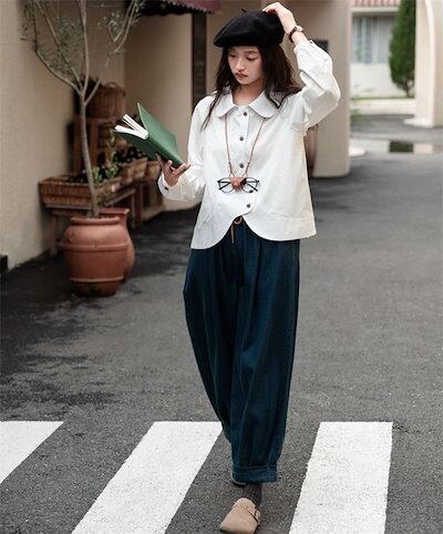 デニムパンツ レディース イージーワイドパンツ ボトムス パンツ ウエストゴム ゆったり 美脚 レトロ リラックス 秋 冬 無地 ガウチョ ポケット付 サルエルパンツ バルーン カジュアル 体型カバ