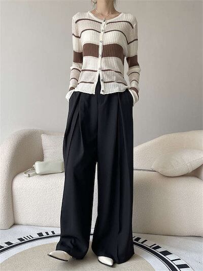 パンツ ワイドパンツ タックパンツ レディース 春 夏 秋 冬 ボトムス タック フレア ワイド ロング スーツパンツ ロングパンツ ガチョウパンツ ハイウエスト ポケット付き ゆったり シンプル 洗