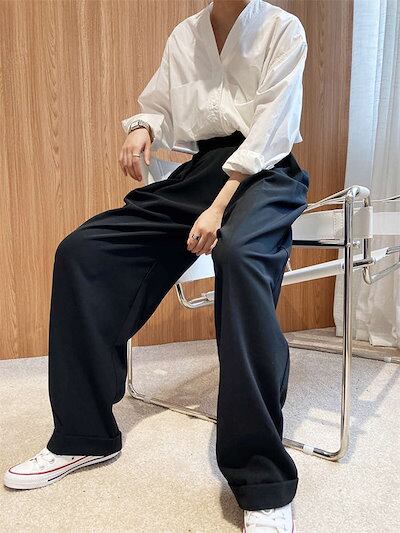 ワイドパンツ レディース タックパンツ ボトムス マキシ丈 秋 冬 春 オールシーズン無地 イージーパンツ ズボン アシンメトリー スラックス ハイウエスト マジックテープ 上品 きれいめ 落ち感 セ
