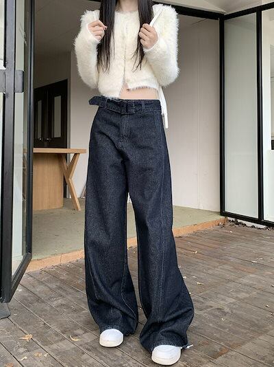 ワイドパンツ レディース デニムパンツ 春 秋 冬 ロング丈 ワイド デニム ジーンズ ストレート ボトムス 長ズボン シンプル カジュアル ハイウエスト 楽ちん リラックス 体型カバー 美脚 脚長効