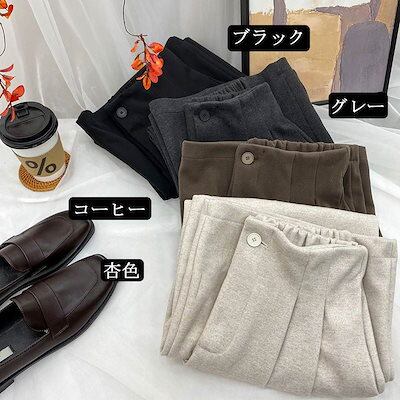 ワイドパンツ レディース 秋冬 ガウチョパンツ パンツ ワイド ストレートパンツ ハイウエスト カジュアル 無地 あったか ガウチョ ボトムス ウエストゴム 大きいサイズ ロングパンツ ウール調 ゆっ