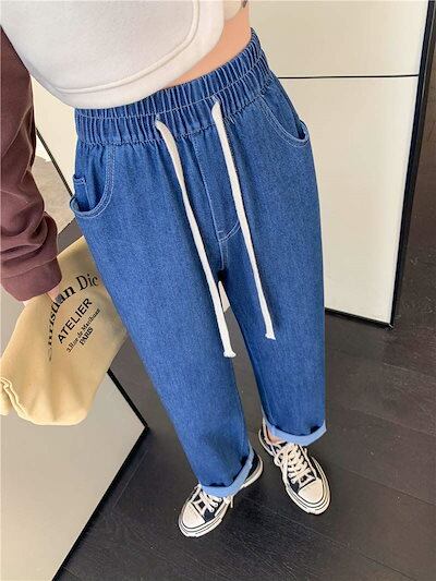 デニムパンツ レディース ワイドパンツ デニム ロング ストレートパンツ パンツ ハイウエスト ウエストゴム ボトムス ワイド ストレート ロングパンツ 春 秋 ジーンズ 大きいサイズ ゆったり 体型