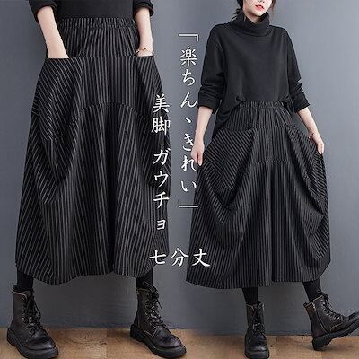 パンツ ワイド スカーチョ 冬 きれいめ ガウチョパンツ 七分丈 秋冬 ワイドパンツ レディース ボトムス キュロット パンツ ハイウエスト ウエストゴム スカッツ 体型カバー ゆったり きれいめ パ