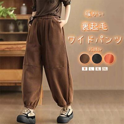 ロング パンツ レディース 冬 ロングパンツ バルーンパンツ ワイドパンツ 裏ボア テーパードパンツ 裏起毛 イージーパンツ 長ズボン ウェストゴム ハイウェスト リラックス パンツ 体型カバー ロン