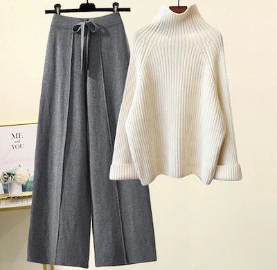 新作 ニットワイドパンツ レディースセットアップ セーター ニット 2oo円OFF!】秋冬 【2枚購入で 気質 セットアップ 二点セット 上下セット おしゃれ アウター