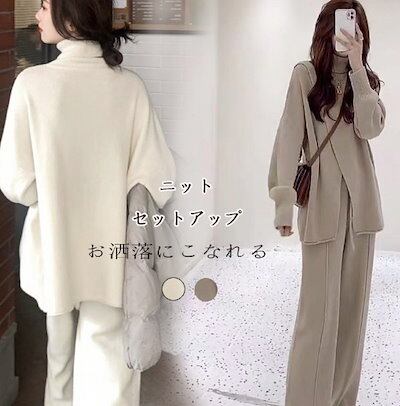 タートルネックニット2022 レディース 秋冬 ニット上下セットニットセットニット+ワイドパンツゆる体型カバークール長袖 無地 カジュアル夕イトスカ一ト冬のワンピースリネンワンピ