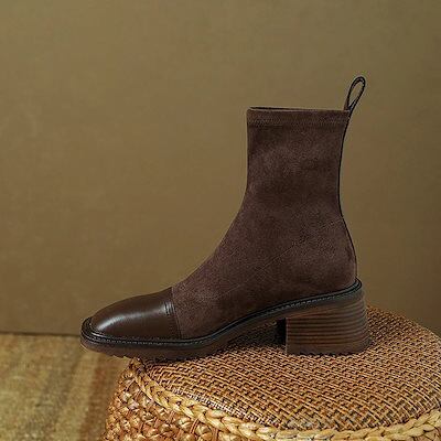 本日の限定商品2024秋 新作 新作 冬 裏ボアタイプ ウエスタンブーツ シューズ レディース 太ヒール ショット丈ブーツ ーシューズ スエード 黒 スエード調靴 ショートブーツ 福袋