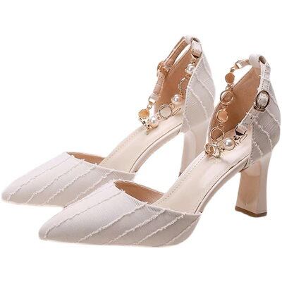 2024 春夏 シューズ スタイルアップ!ヒールパンプス 尖ったレトロな雰囲気の新作細ヒールヤーン5 cmハイヒール パンプス ミュール レディース 美脚 脚やせ 歩きやすいサンダル サンダル レデ