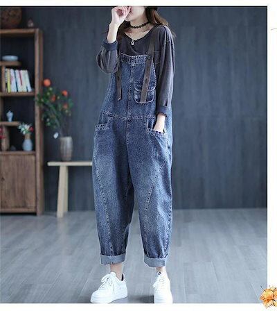 サロペット オールインワン レディース ワイドパンツ サロペットパンツ デニムパンツ デニム ボトムス パンツ ズボン 秋 デニム ロング丈 オーバーオール デニムサロペット 大人 リ