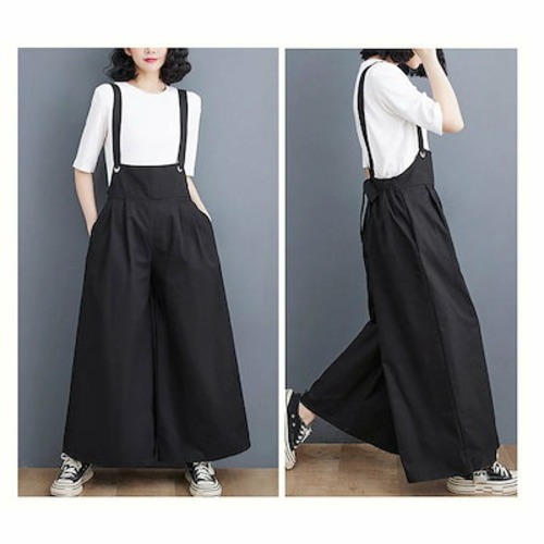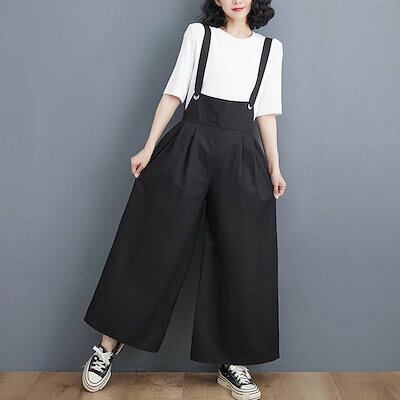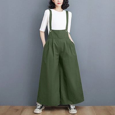 サロペット パンツ レディース ワイドパンツ 春 夏 オールインワン オーバーオール パンツ ボトムス ガウチョパンツ ロング スカーチョ ロングパンツ ワイド ガウチョ ハイウエスト バックリボン