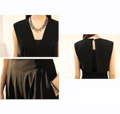 レディース オールインワン サロペット オーバーオール パンツ ボトムス Vネック ノースリーブ 無地 大きいサイズ ゆったり シック シンプル リゾート フォーマル パーティ 結婚式 2次会 お出