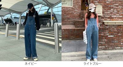 レディース デニム オーバーオール サロペット ボトムス 無地 春秋 レトロ カジュアル ストリート アウトドア 大人可愛い ラフスタイル 休日コーデ お出かけ デート デイリー 普段着 ネイビー