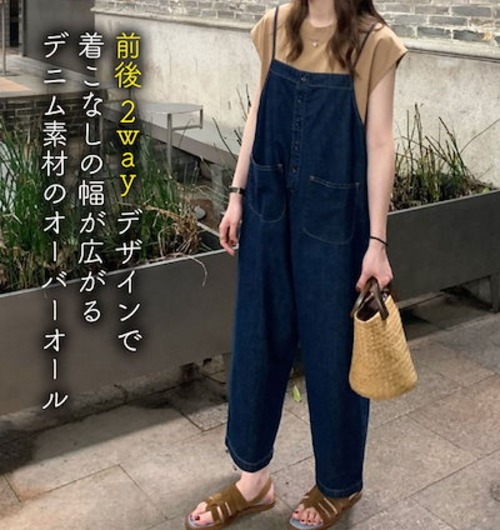 オーバーオール デニム サロペット レディース ワイド 40代 夏 オールインワン パンツ カジュアル ゆったり デニムサロペット 前後2way おしゃれ M L 2L