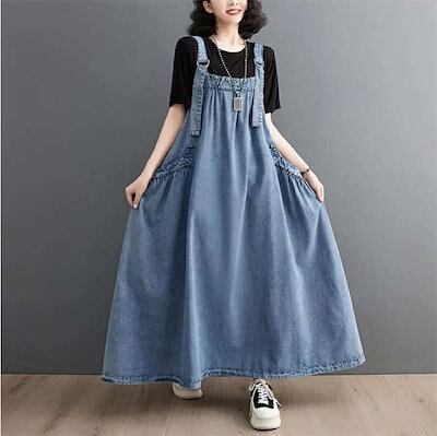 オールインワン レディース サロペット ワンピース デニム マキシワンピース ロングワンピ ジャンパースカート オーバーオール 大きいサイズ ゆったり 体型カバー ジャンスカ サロペットワンピース ロ