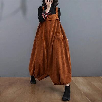 コーデュロイ サロペット パンツ レディース ノースリーブ きれいめ 秋冬 オールインワン 大きいサイズ オーバーオール 無地 大きいサイズ ゆったり 着?せ カジュアル 体型カバー パンツ オールイ