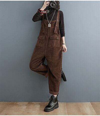 コーデュロイサロペット サロペット パンツ レディース コーデュロイ 秋冬 無地 ノースリーブ オールインワン 大きいサイズ オーバーオール ゆったり 着?せ ナチュラル 大人可愛 体型カバー 秋 春