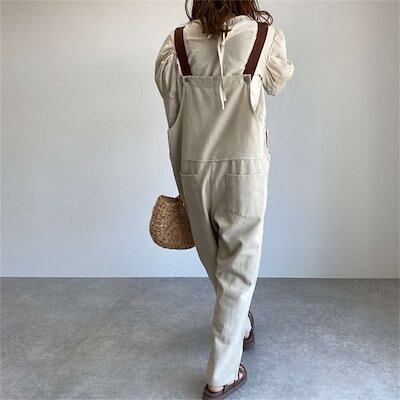 サロペット レディース 春 夏 オールインワン パンツ オーバーオール 大きいサイズ カジュアル ボトムス ツイル サロペットパンツ ロング 体型カバー 春秋 ロングパンツ オールシーズン 体型カバー