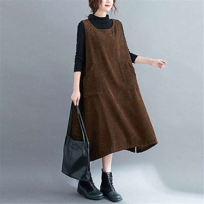 ジャンパースカート サロペット ワンピース レディース 秋冬 コーデュロイ サロペット スカート オーバーオール ジャンパースカート ロング丈 体型カバー 無地 オールインワン シンプル 可愛い カジ