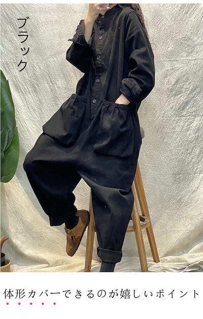 (おおきなポケットがおしゃれ)オールインワン サロペット オーバーオール 大人カジュアル レディース ジーンズ ゆったり きれいめ 大きいサイズ ロング パンツ長袖 ワイドパンツ つなぎ 春夏 重ね着