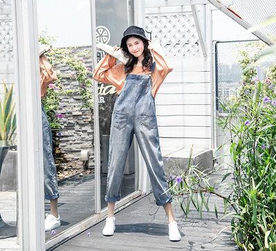 オールインワン レディース サロペット デニム サロペット オールインワン オーバーオール パンツ ボトムス ロング丈 クロップド丈 無地 カジュアル ストレッチ サロペット デニム ジーンズ
