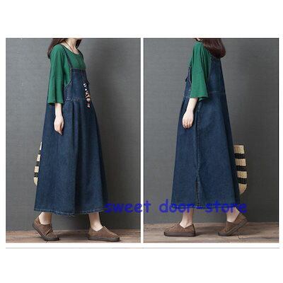 【本日限定】サロペットスカート レディース デニム ワンピース ロング丈 オールインワン キャミワンピ オーバーオール デニムスカート 体型カバー 無地 ゆったり