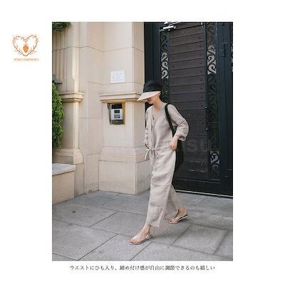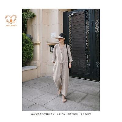 つなぎ 綿麻 レディース コンビネゾン 長袖 オールインワン 9分丈パンツ 春 オーバーオール 夏 リネンシャツ リネンパンツ コットンリネン 薄手